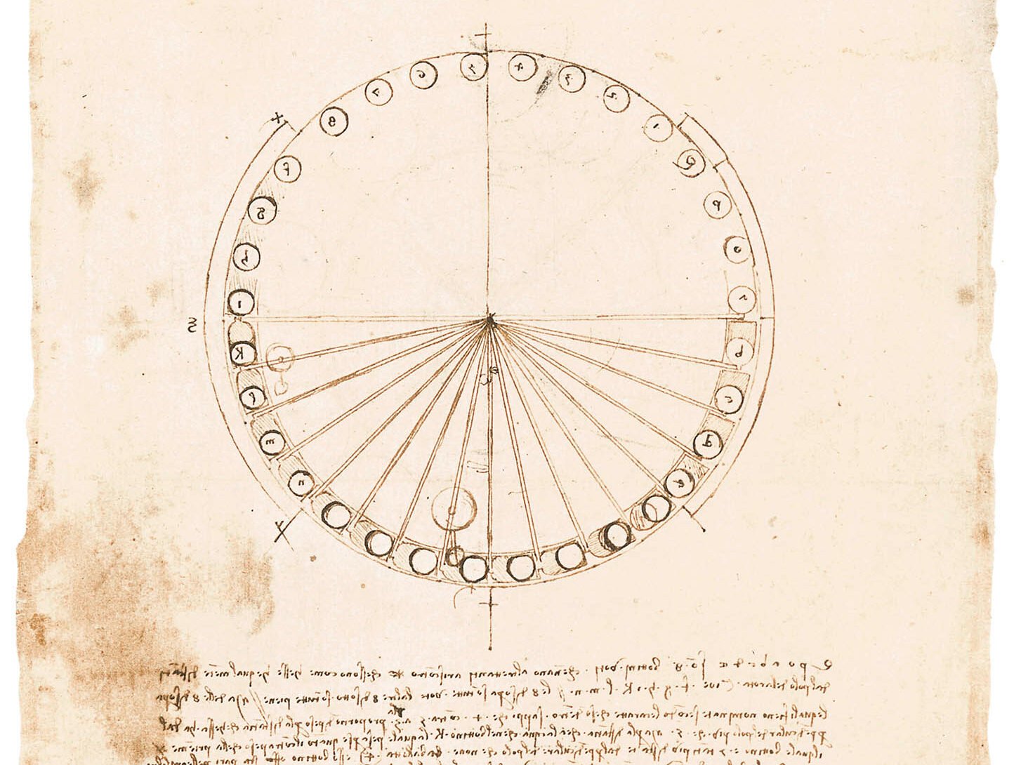Leonardo Da Vinci, Study for the design of perpetual wheel, 1493, in Codex Atlanticus, f. 1062 r, Veneranda Biblioteca Ambrosiana, Milan