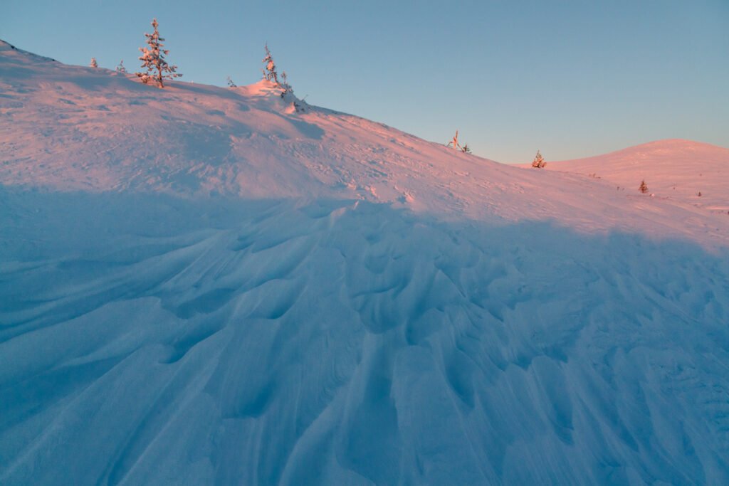 Pal­las­tun­turi fells dur­ing sun­set in Muo­nio, Lap­land, Fin­land in Jan­u­ary. Cred­it: Ximon­ic (Simo Räsä­nen)